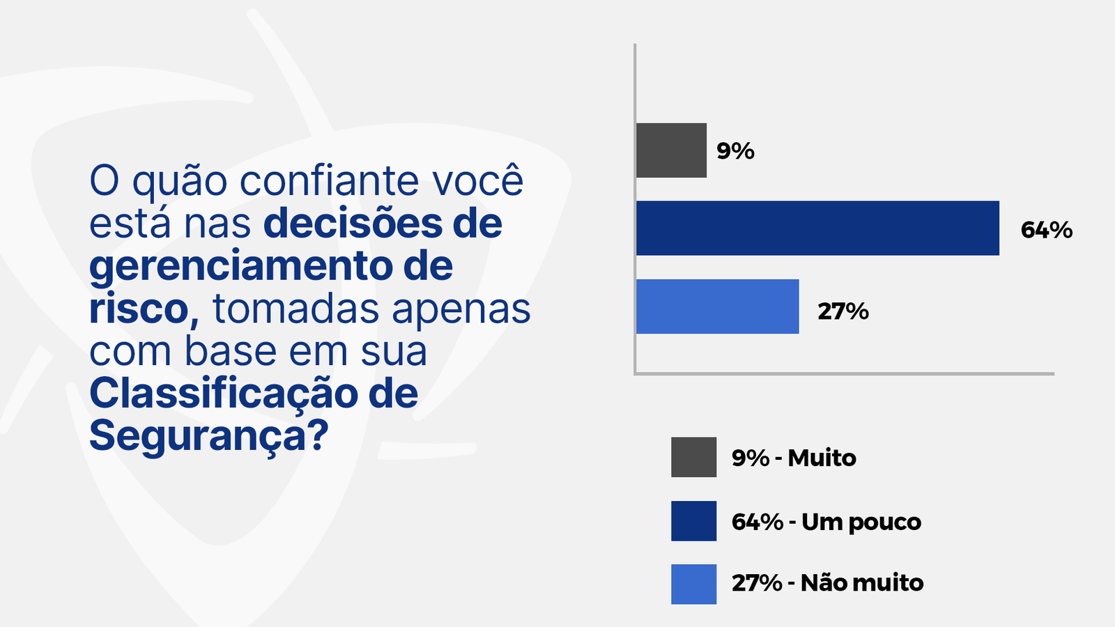 Abaixo, você confere dois gráficos que apontam o senso de segurança passado pela Classificação de Segurança em profissionais do meio. Os dados são da Cyber GRX.¹