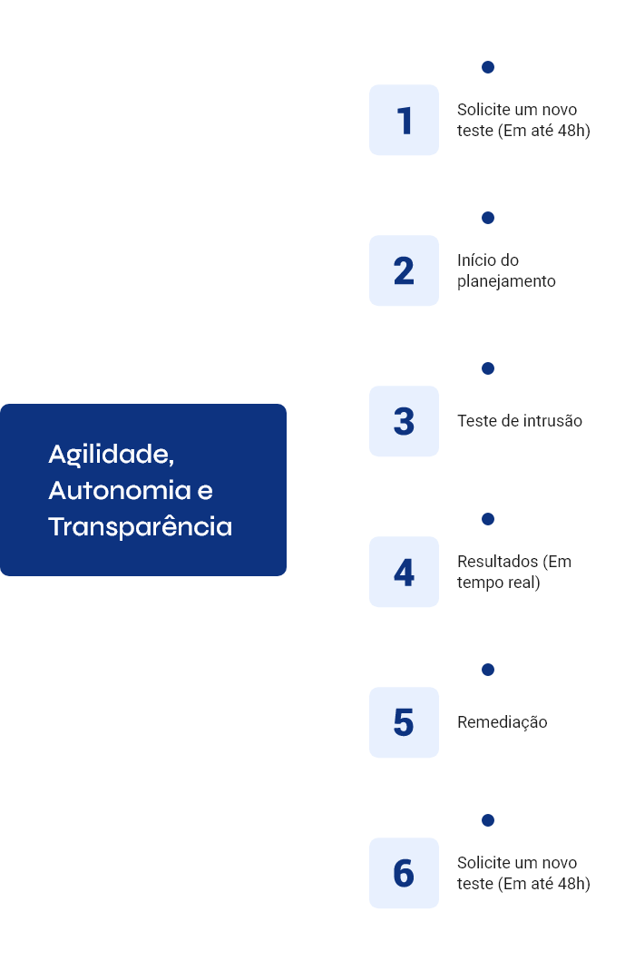 Através do Pentest as a Service (PTaaS), nós contamos com uma comunidade de profissionais qualificados e com uma plataforma exclusiva que mostra os dados do teste em tempo real. Tudo isso garante até 90% de aior agilidade em sua realização.